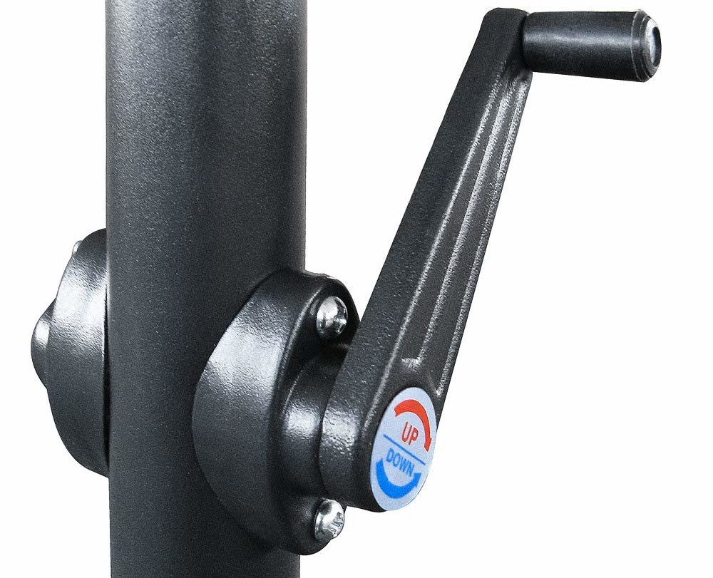 Jednoduchý kľukový mechanizmus zabezpečuje jednoduchú manipuláciu pri rozkladaní a skladaní slnečníka.