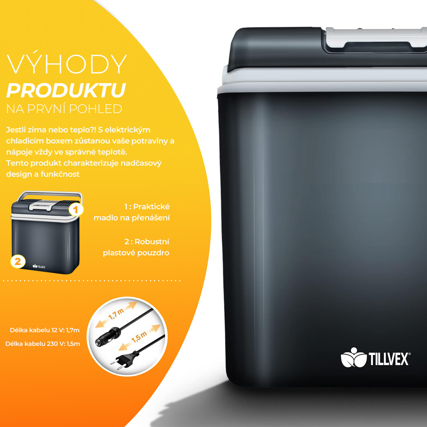 Chladnička môže prepravované nápoje/potraviny ochladiť o 15 až 20 °C v porovnaní s teplotou okolia.Ďalšou užitočnou vlastnosťou elektrického boxu Tresko je možnosť vyhrievania až na 65 °C, takže ho môžete používať aj v zime a udržiavať jedlo teplé.