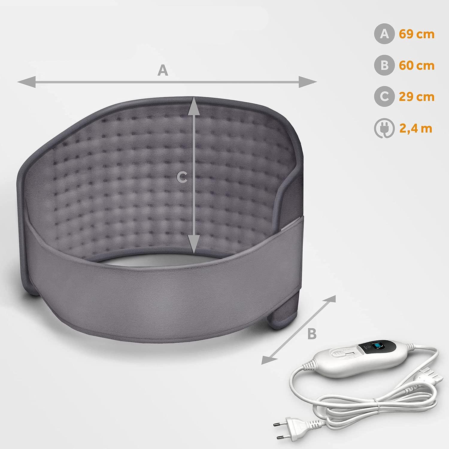 Povrch deky je vyrobený z mäkkého plyšového materiálu, ktorý je jemný a príjemný na dotyk. Vyhrievací pás možno použiť na rôznych častiach tela, vďaka flexibilnému zapínaniu na suchý zips ho ľahko pripevníte na miesta, ktoré potrebujete zohriať.